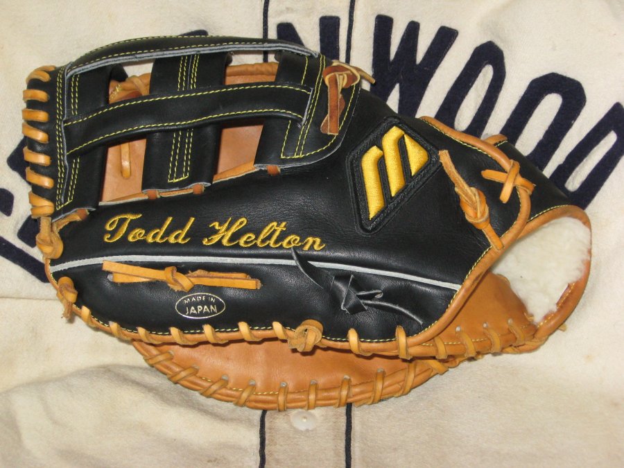 Mizuno World Win Glove, game-used by the enormously popular Colorado Rockies Todd "Highway to" Helton. It
