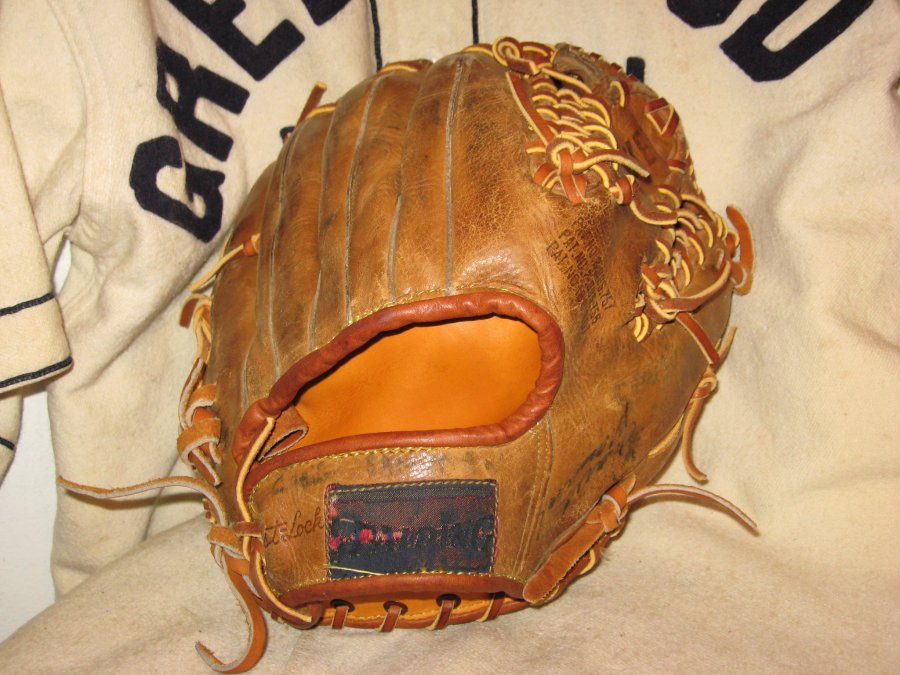 | Rawlings | HSP | Herb Score Personal Model | Ex- | This is a decent example of arguably Rawlings' BEST glove in the 50s. Large glove, top-of-the-line, and feels good on the hand despite some checking in the lining. Relaced fingers, but needs a relace on the (stained) web. Overall an affordable example - leave your NrMt one at home, and play catch with this one! | SOLD | |