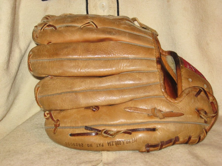 | Wilson | A2010 | Johnny Antonelli | Ex- | This glove is a VERY similar pattern to the A2000s of the early 60s. Virtually identical with the x-laced web and "Major League" along the thumb. This one has leather that is worn, but it has very nicely relaced, and retains a nice overall shape. Great catch glove. | SOLD | |
